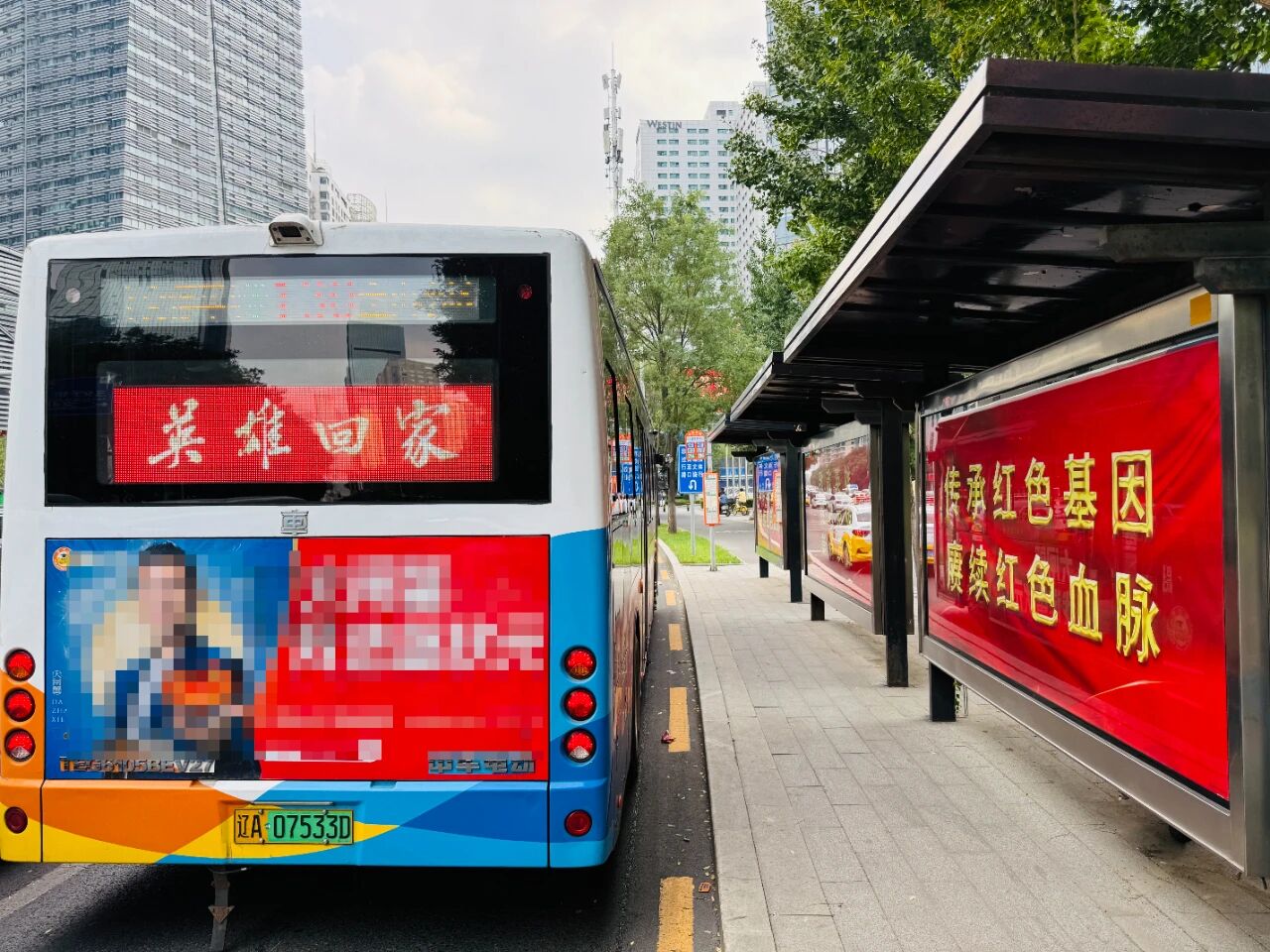 此外,在9月11日至13日期間,沈陽客運(yùn)集團(tuán)旗下175條公交線路的車輛后視屏循環(huán)播放“英雄回家”宣傳標(biāo)語,以最直觀的方式向英雄致敬。